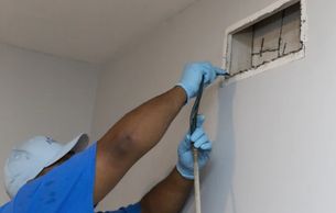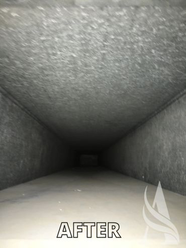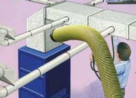 While the duct system is under negative pressure, the supply and return vents are cleaned with high pressure air tools.
